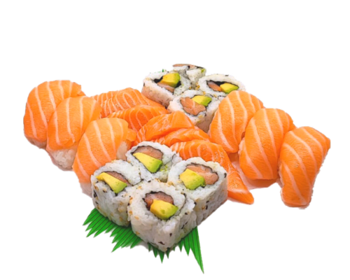6 Tranches de sashimi au saumon 6 Sushi au saumon 8 California saumon avocat, salade de choux ou soupe miso
