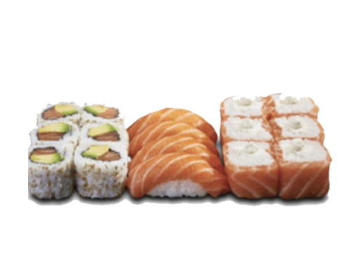 8 California saumon avocat, 8 saumon roll cheese, 4 sushi saumon, salade de choux ou soupe miso