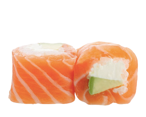 Riz vinaigré, algue nori, saumon cru et du fromage, enroulé de saumon cru